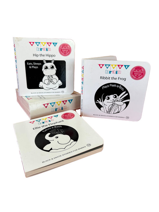 A beautifully designed board book series designed to assist in babies eye development. Created to assist in developing a routine with baby, the books can be incorporated into your daily routine or simply used to read and enjoy.